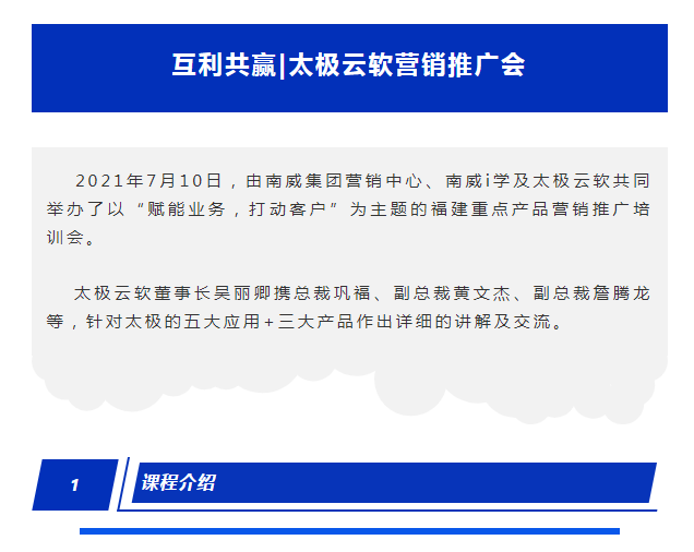 此次工作坊的培训,加深了集团区域销售组织对太极云软产品的认知和分析,加强了集团销售与太极云软的协作,有利于实现双方互利共赢。基于集团的赋能,结合太极云软自身优秀的产品能力,太极云软离上市目标又更近一步。